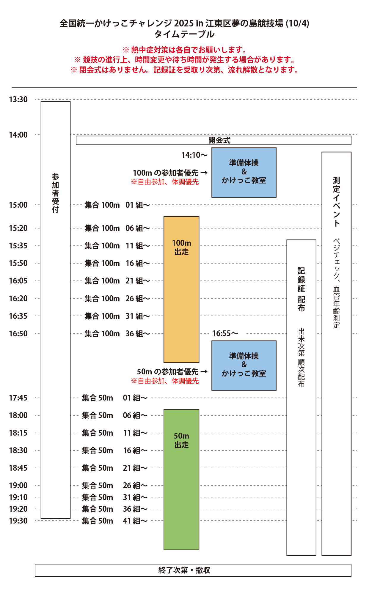 当日走る「組」「レーン」及び、「集合時間」は、以下の表よりご確認ください。
