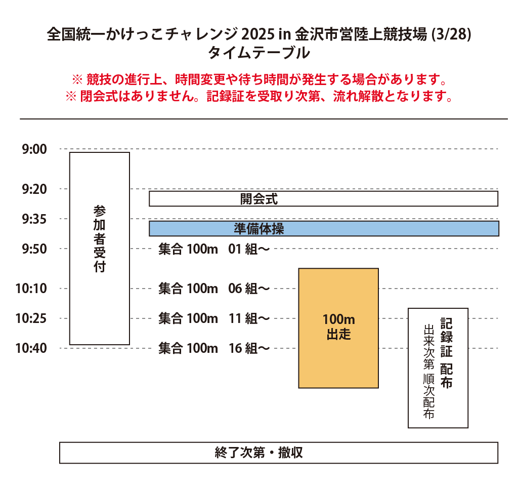 - 閉会式はありません。記録証を受取り次第、流れ解散となります。